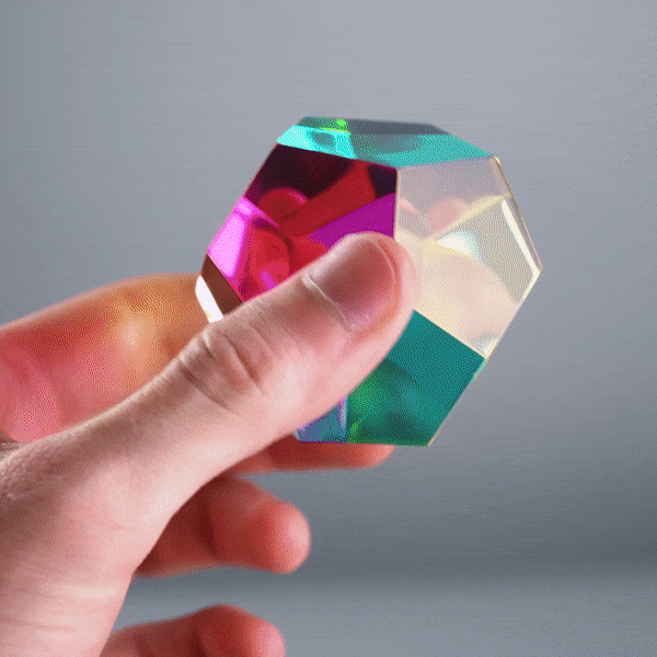 Rotate it just right and colours blend, the light catches the shape and merges colour with colour. In a darkened room, hold it up before light to project a magical spectrum of colour onto your walls and furniture; or place it in a sunbeam to illuminate your day – and steal the show.